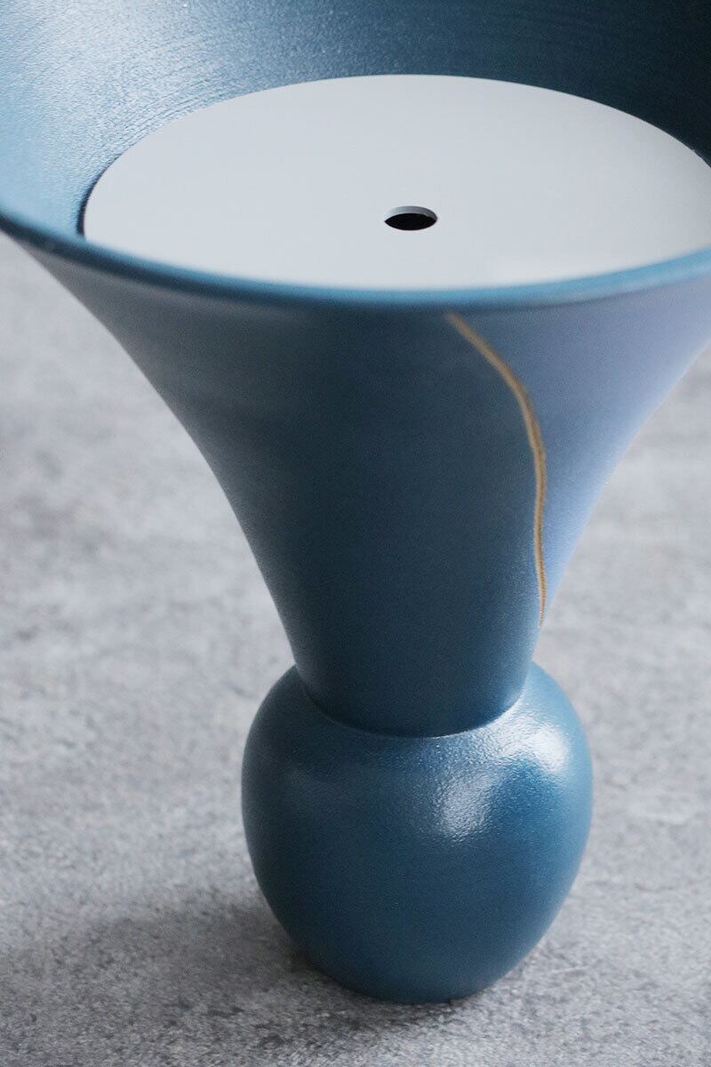 上品な形と色合いの万古焼 花器です。洋花・和花、どちらの花にも合う作品です。