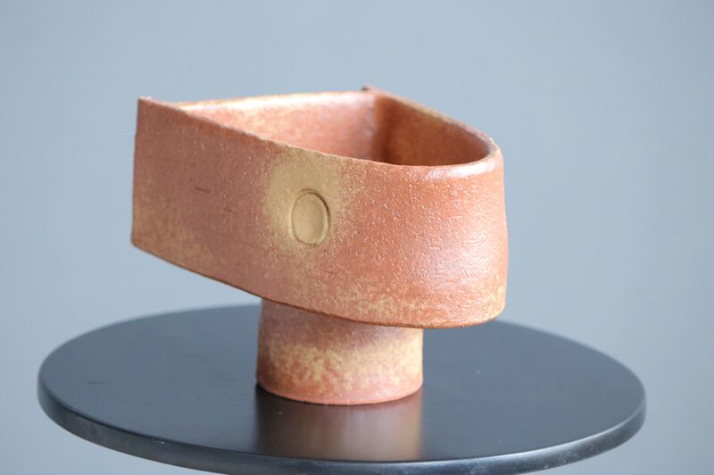 個性的なシェイプの万古焼花器。洋花を飾っても素敵ですが、そのままインテリアアイテムとしても楽しめる作品です。